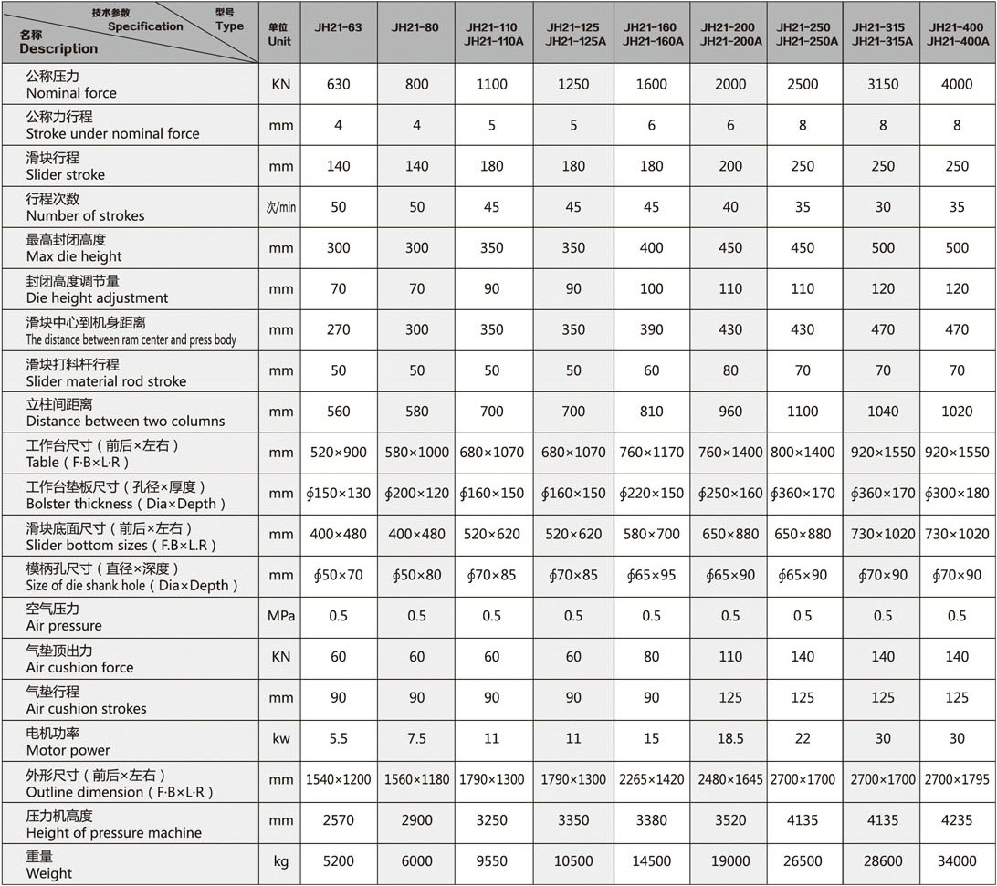 JH21-160/200/250開式固定臺壓力機
